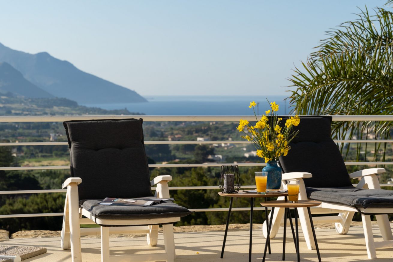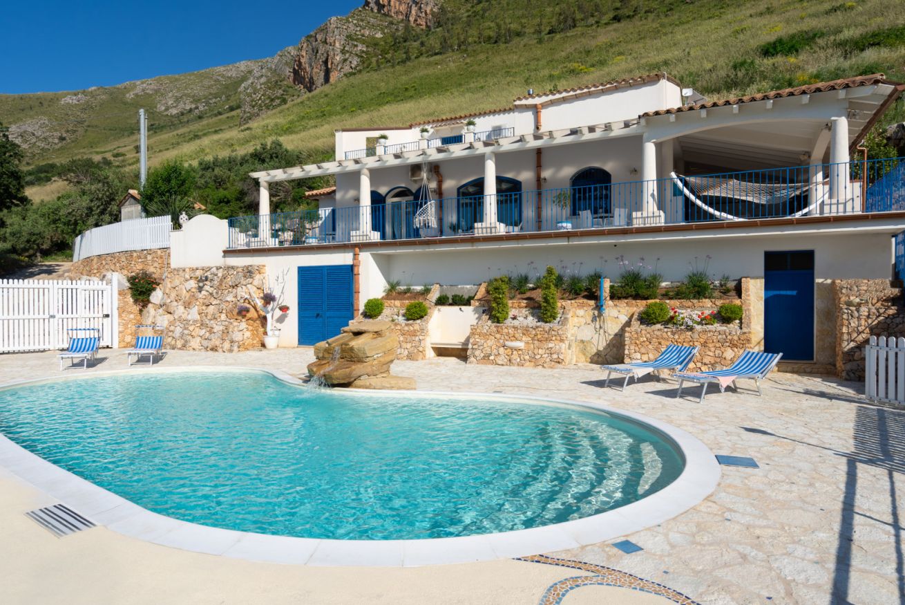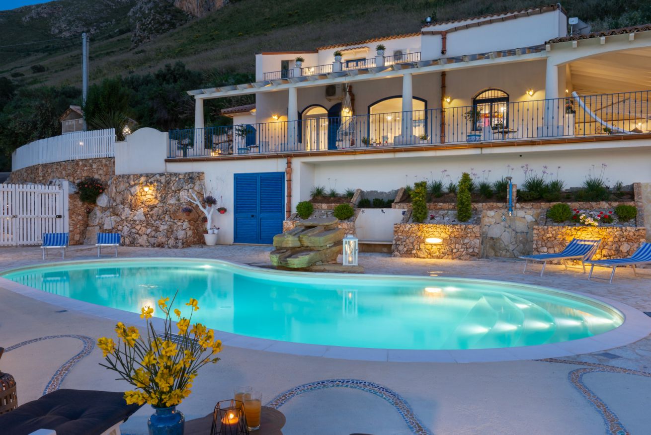 Villa Olimpia è una struttura moderna del tutto indipendente situata sul promontorio di Scopello con straordinaria vista sul Golfo di Castellammare. La proprietà segue l'andamento naturale del terreno che si sviluppa su 3 livelli. Sul primo terrazzamento dal basso verso l'alto è situata l'area piscina, sul terrazzamento centrale è situata la villa e sul terzo ed ultimo terrazzamento è presente un ulteriore spazio con aiuole fiorite.