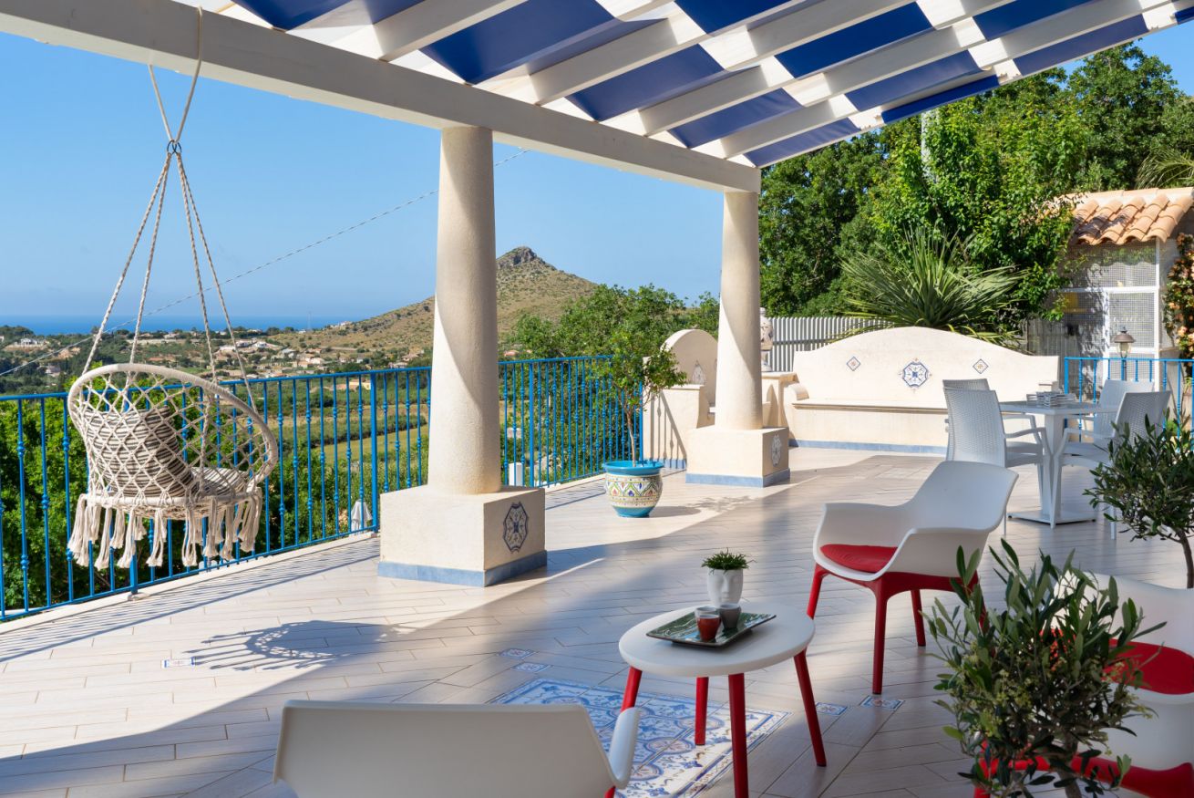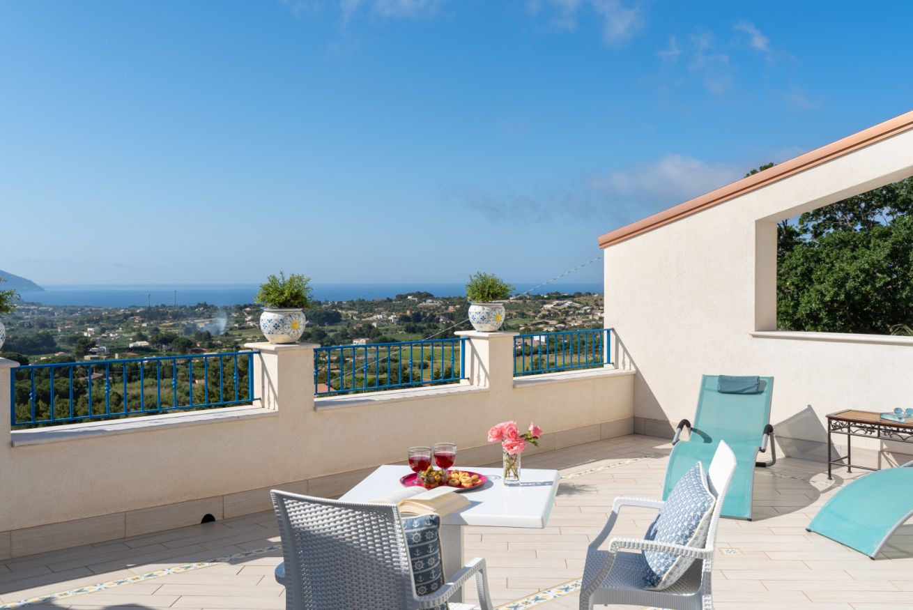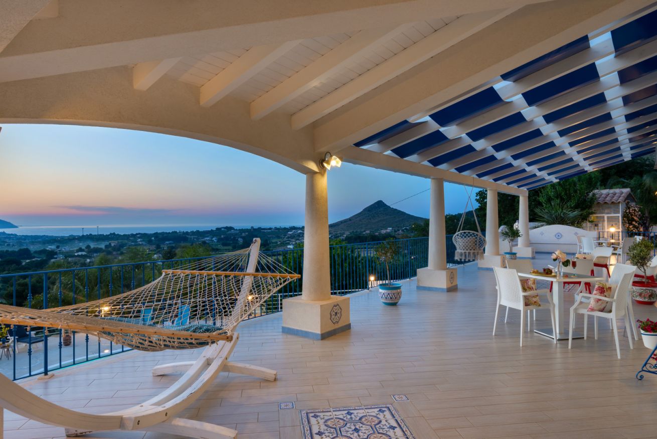 Villa Olimpia è una struttura moderna del tutto indipendente situata sul promontorio di Scopello con straordinaria vista sul Golfo di Castellammare. La proprietà segue l'andamento naturale del terreno che si sviluppa su 3 livelli. Sul primo terrazzamento dal basso verso l'alto è situata l'area piscina, sul terrazzamento centrale è situata la villa e sul terzo ed ultimo terrazzamento è presente un ulteriore spazio con aiuole fiorite.